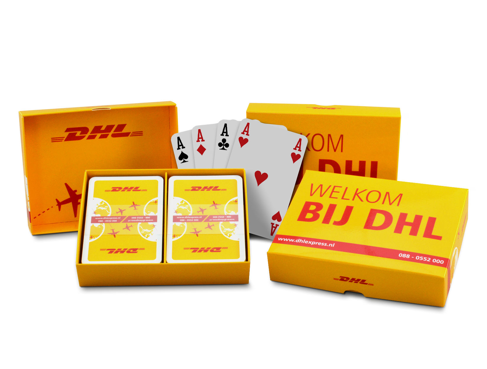 2 stok kaarten, met banderol, in een prachtig all-over in Full Colour te bedrukken gelamineerd doosje. De kaarten zijn gemaakt van 320 grams echt speelkaarten karton of 305 grams mono karton en hebben het internationale Bridge-formaat.